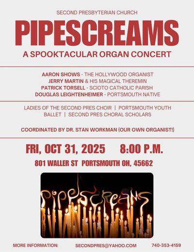 Join us for our PipeScreams Spooktacular Organ Concert on Halloween evening starting at 8:00 pm.