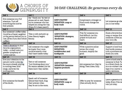 We've been talking a lot about generosity lately. Now, are you ready for a 30-day generosity challenge leading up to Thanksgiving?